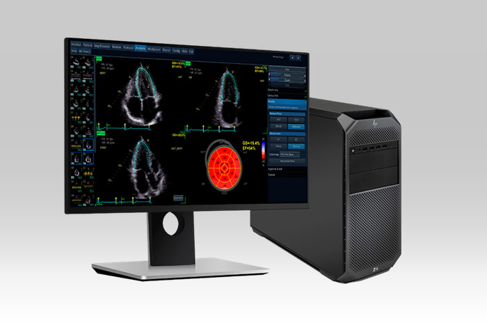 EchoPAC 心臓超音波検査の動画データを保存、解析する機器です。心疾患の病態に迫る様々な解析が可能となりました。