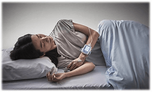 検査はご自宅でできる簡易検査と、主に専門医療機関に一泊して行う精密検査(終夜睡眠ポリグラフ検査:PSG検査)があります。簡易検査は重症の睡眠時無呼吸症候群の発見に有効であり、軽症や中等症の発見には精度の面で精密検査が適しています。